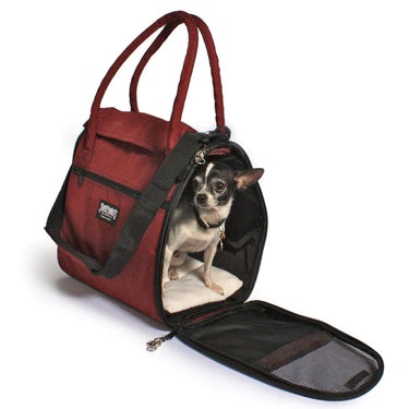 I know preparing to fly with a pet can be stressful and you have a lot of questions. The benefits and popularity of frameless soft sided pet carriers is their pliability and ability to conform to varying under seat configurations of modern aircraft. All airlines actually have similar sizing requirements, and those are more stringent on narrow bodied aircraft than wide bodied aircraft, but yet the primary design of an airline capable tote is to comfortably fit your pet but yet conform to fit under the 8.5" seat. Many airlines will indeed show 8.5” as their height spec, but that is targeted for the older style hard shell carriers and not pliable soft sided carriers. A carrier that is truly only 8.5” in height will only fit the smallest of kittens, puppies and bunnies. Keep in mind, airline capable carriers are designed for your pet to be laying down, as most pets will need to do so to allow for fitting under the seat. Most of my bags are designed at about 18x11x11” exterior measurement, as that is the optimal size for under seat capability on the widest variety of aircraft. All are designed with pet safety and comfort as a priority, and secondly with pliable fabrics that allow compression for under seat compatibility, so it’s mostly a choice of styling preference with each model. Most of the standard sized models are about 16" on the interior length, while the larger Big Apple model is about an 18" interior. It is about 2” longer at 20” exterior than most airlines will spec, but it’s built for those pets where there is simply not an option for a smaller size. The Big Apple model has been on the market for a long period of time now, literally sold worldwide, and a very popular model. For those who desire a bag that is 9” in height to more easily meet under seat specs I can recommend to look at the backpack models such as the Monterey and Aspen, all of which are designed and padded to lay on their short side for under seat use. Another option is the smaller Gold Series Mini model, which is about an inch smaller all around than the standard sized models.