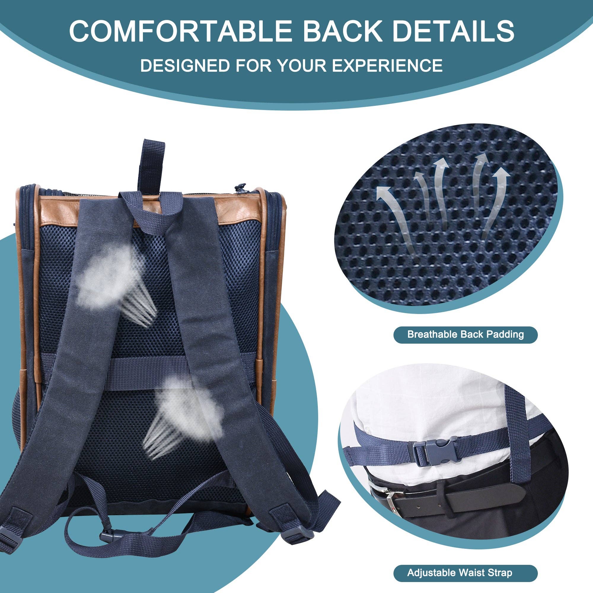 ⦁ Safe and Sturdy: Jespet's pet backpack features upgrade rigid construction to hold its shape when your pet is Inside. Fine workmanship, durable and not easy to break, providing better security for your pets. Padded straps and buckled waist strap let you carry your pet on your back in an ergonomic manner.