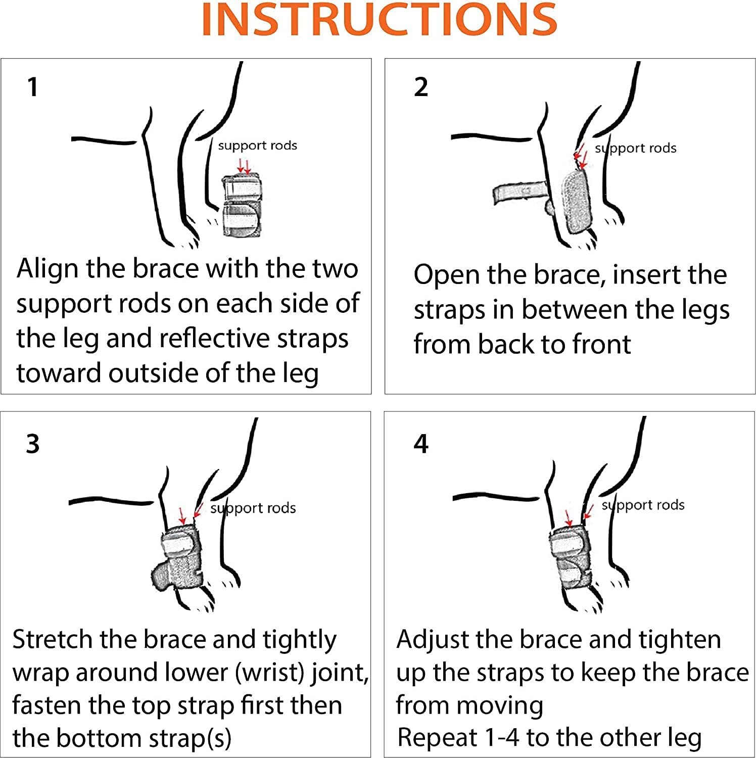 NeoAlly 3-in-1 Front Leg Dog Splint Brace: Rigid & Spring Inserts, Safety Reflective Straps (Pair)