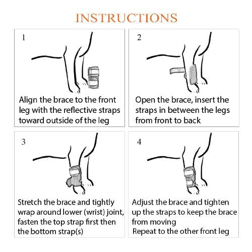 - ADJUSTABLE & SAFE: Our stay-put design provides a custom fit for your dog’s leg and won’t slide down. Each front leg brace comes with 4 reflective Velcro® straps that secure the brace in place and also provide visibility and safety in the dark.