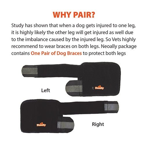 - PROTECTS AGAINST FUTURE INJURY: Your dog may suffer from injuries related to jumping, walking, or running. Our NeoAlly® Dog Front Leg Brace provides assistance to help support and stabilize your dog’s front legs. It relieves inflammation and helps maintain your dog’s body balance to save her from future injuries.