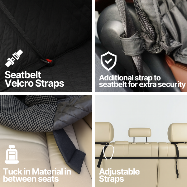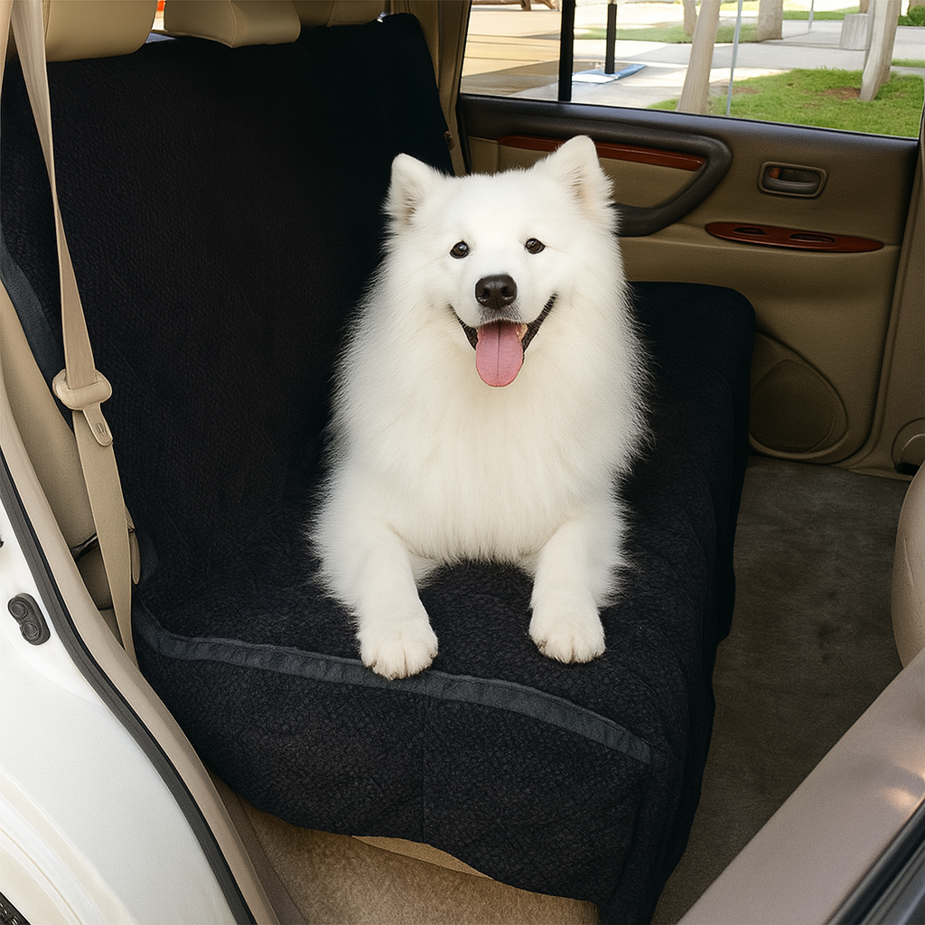 Crafted from quilted, water-repellent spun polyester fabric, this rear bench seat protector features a premium padded design that’s soft to the touch yet tough against daily wear. The secure 5-point attachment system ensures a snug fit that stays put, even during bumpy rides. Whether you're commuting or adventuring with your dog, this pet-friendly car bench cover makes cleanup a breeze and installation even easier.