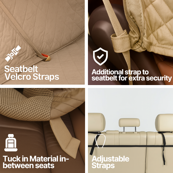 Crafted from quilted, water-repellent spun polyester fabric, this rear bench seat protector features a premium padded design that’s soft to the touch yet tough against daily wear. The secure 5-point attachment system ensures a snug fit that stays put, even during bumpy rides. Whether you're commuting or adventuring with your dog, this pet-friendly car bench cover makes cleanup a breeze and installation even easier.