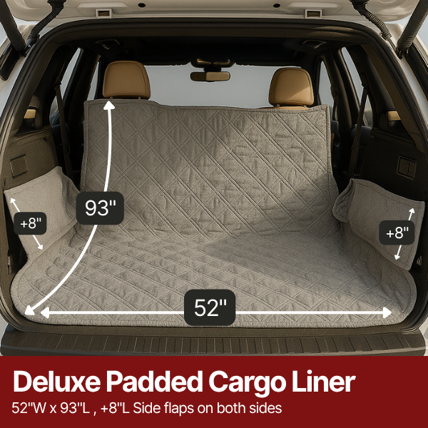 Our quilted cargo liner is ideal for pet owners looking for a dog trunk cover or car pet liner that’s both functional and comfortable. The padded, water-repellent spun polyester fabric offers a cozy surface for pets to relax on during long rides, while the durable construction shields your trunk from dirt, dander, spills, scratches, and heavy gear.