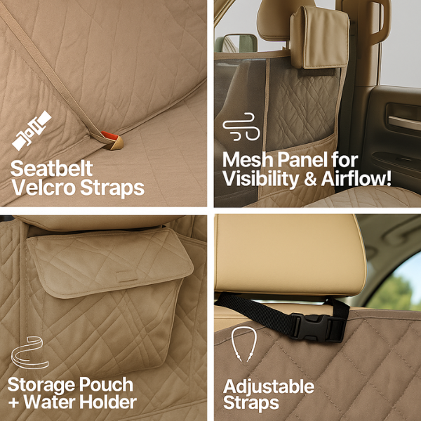 - Easy install and release with adjustable Straps, Buckles, Seat Belt holes. DOUBLES as Cargo Liner