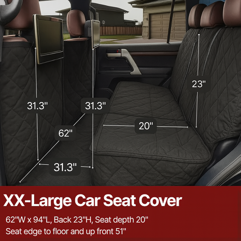 You have to try our XXL Pet Seat Cover designed to be the largest pet seat cover available in the market. It provides more coverage than any other available car seat cover for dogs and other furry companions.