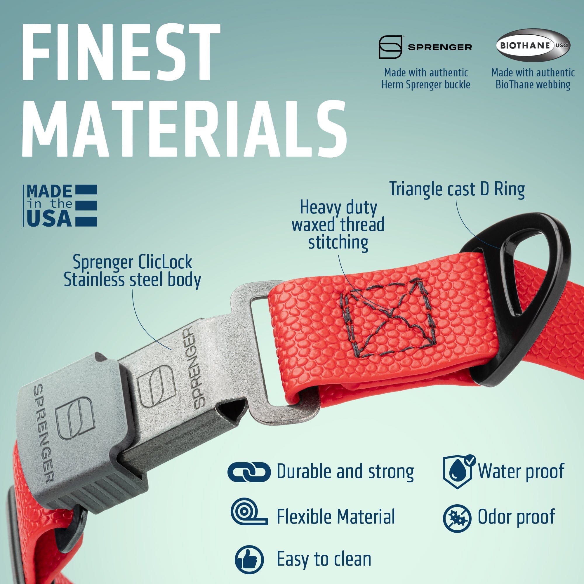 This patented Herm Sprenger ClicLock buckle is made of high-quality stainless steel. When closed, the ClicLock makes a clearly audible "click" indicating secure closure. High quality stainless steel materials are rust-proof, and German manufacturing ensures it will last for years.