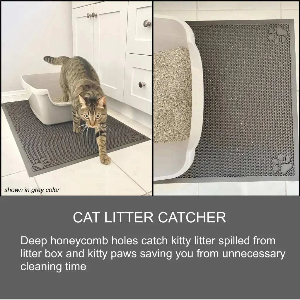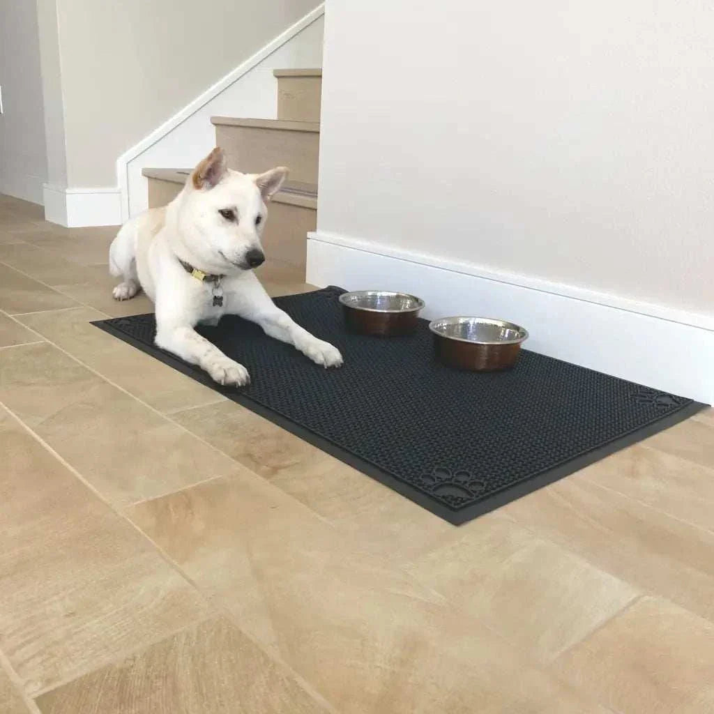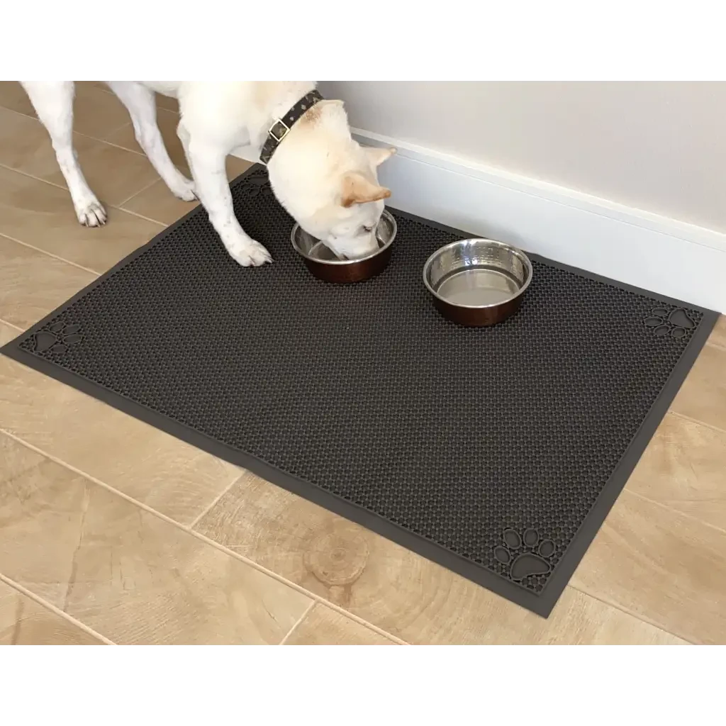 • PERFECT FOR ANY FURRY FRIEND: Great for your dog or cat feeder bowls. Works with flat or raised containers. Can also be used as a cat litter box mat! Perfect for trapping litter and sand for less mess and clean up!