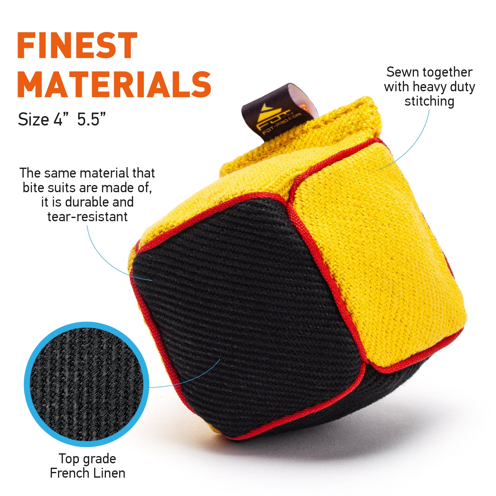 Boost your dog’s training with the French Linen Cube Tug — a top choice of world-class dog training professionals. Made from premium French Linen, this bite tug toy is designed to develop your dog’s prey drive, courage and agility. The handle version allows for consistent performance through a variety of training exercises, including biting, jumping, fetching and retrieval, making it ideal for puppies and young dogs preparing for advanced bite training with a tug or sleeve.