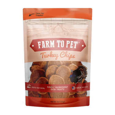 Much like our best selling Chicken Chips, Farm to Pet Turkey Chips are always made with ONLY 1 ingredient - Turkey. We know you care about your pup, so you can count on us to care about their food and everything that goes in it. Your furry friends deserve to enjoy the healthy treats without worrying about what’s in them. Our nutritious turkey treats are sourced from 100% human-grade turkey breast meat and we NEVER add any unhealthy by-products, binders, or fillers. Turkey Chip dog treats…are just turkey.