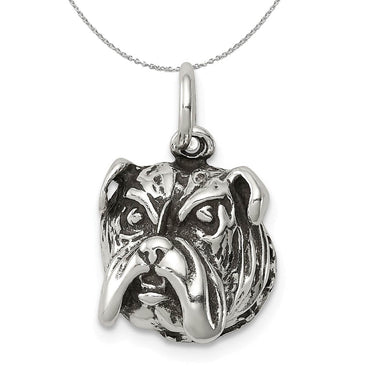 Sterling Silver 12mm Antiqued Bulldog Head Charm or Necklace