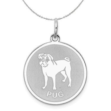 Sterling Silver Laser Etched Pug Dog 19mm Necklace