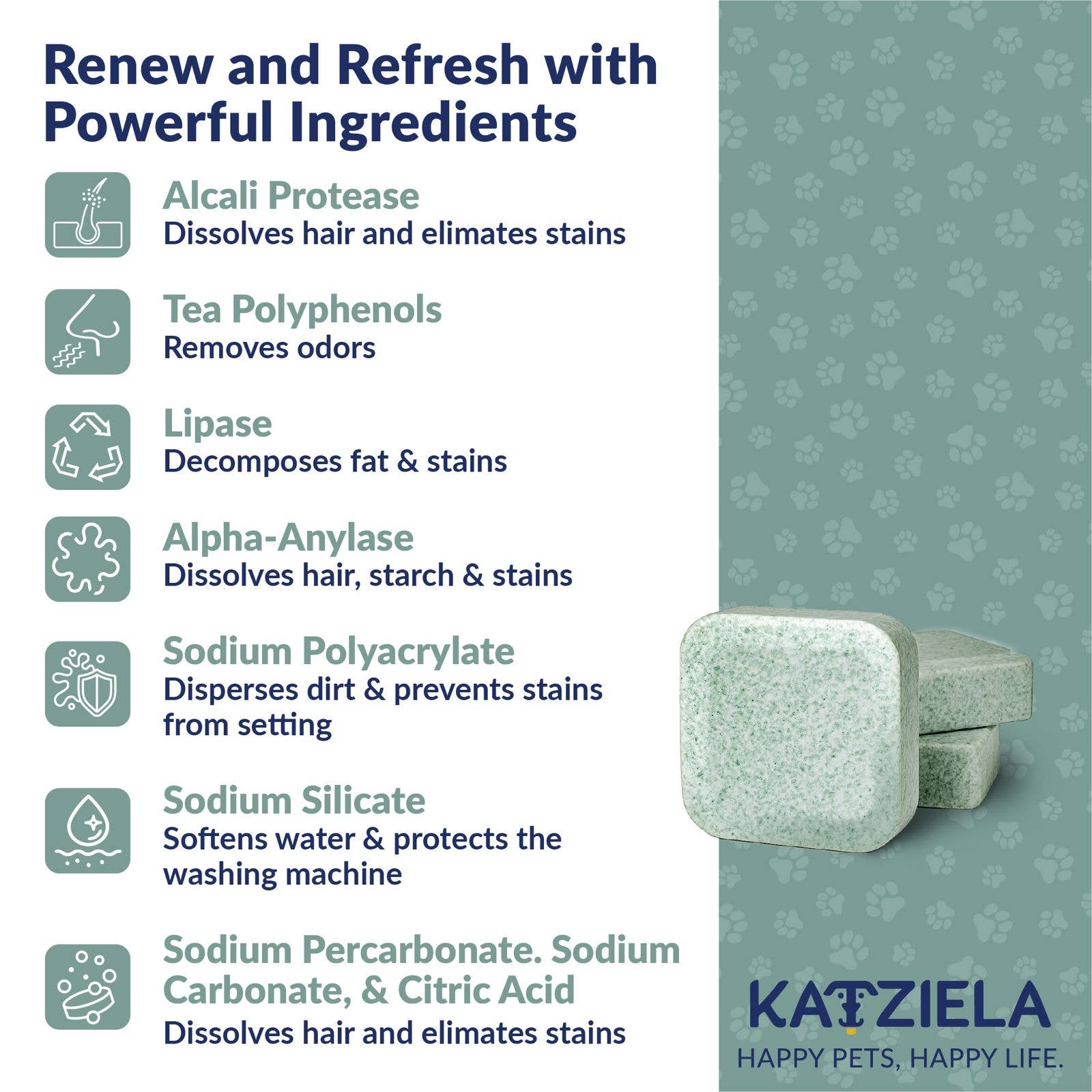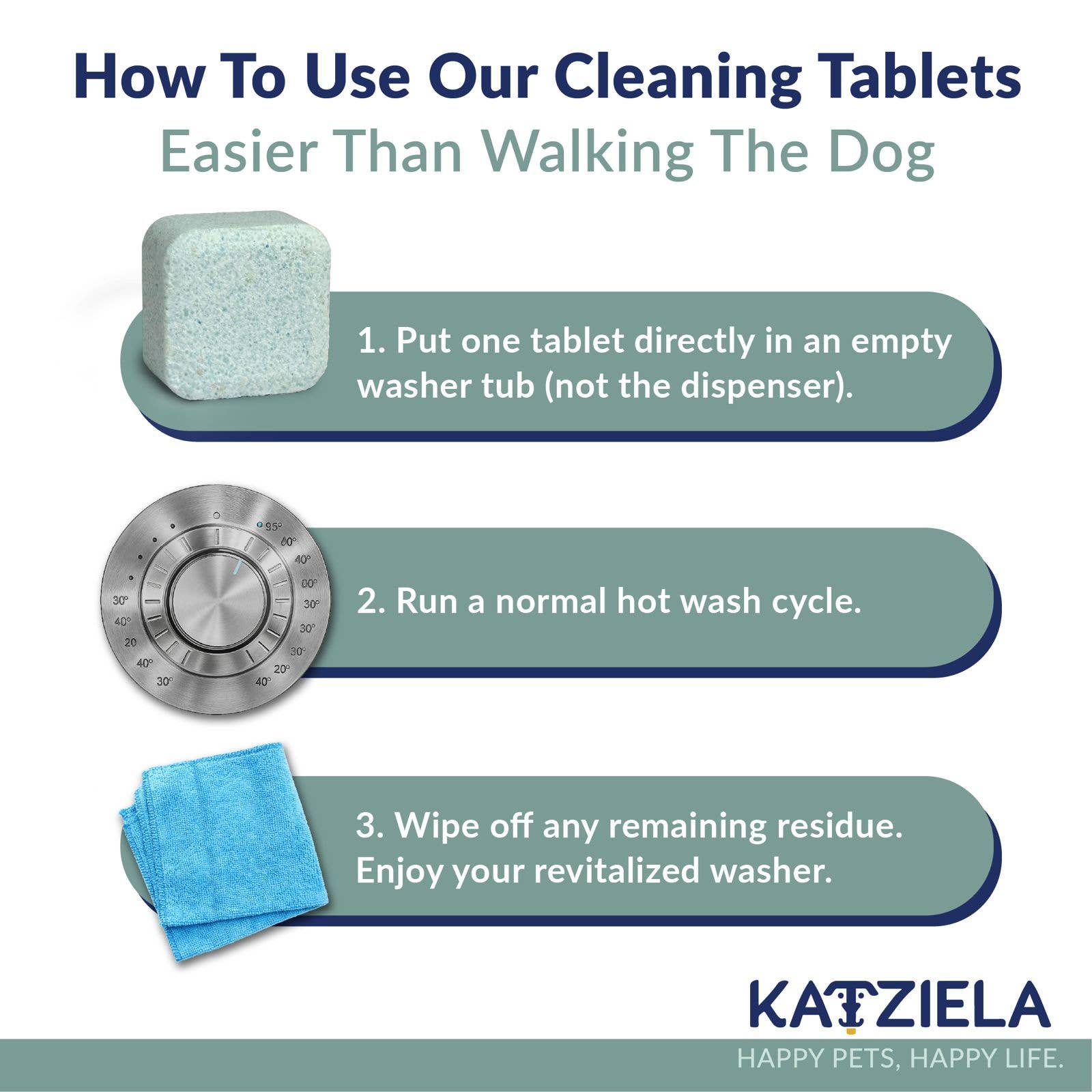 Katziela Washing Machine Cleaner Tablets – Plant-Based, Enzyme Formula for Pet Hair & Odor Removal – Fragrance-Free, Safe for All Washers