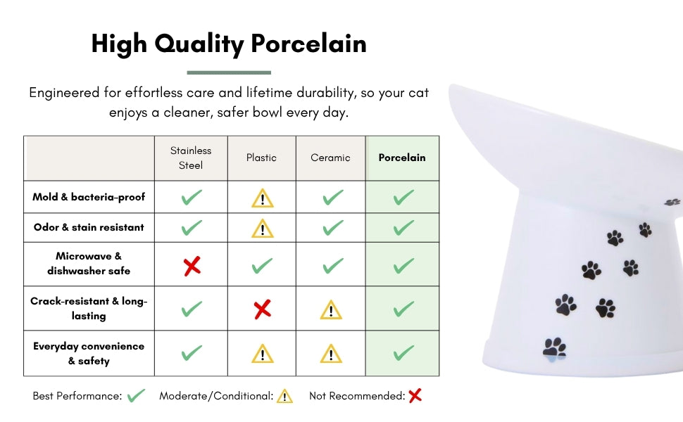 - Safe, Durable & Easy to Clean: Made from high-quality porcelain, free from lead and cadmium; meets strict US, EU and Japanese safety standards; microwave and dishwasher-safe porcelain ceramic cat bowl.