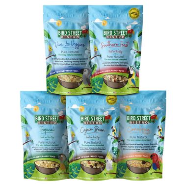 All natural, 100% organic Bird Food for your beloved avian companion. Our Parrot Food Sample Pack never uses fillers, additives, sulfites, preservatives, artificial colors, sugars, salt or, artificial flavorings. You'll love the premium ingredients perhaps more than your bird.