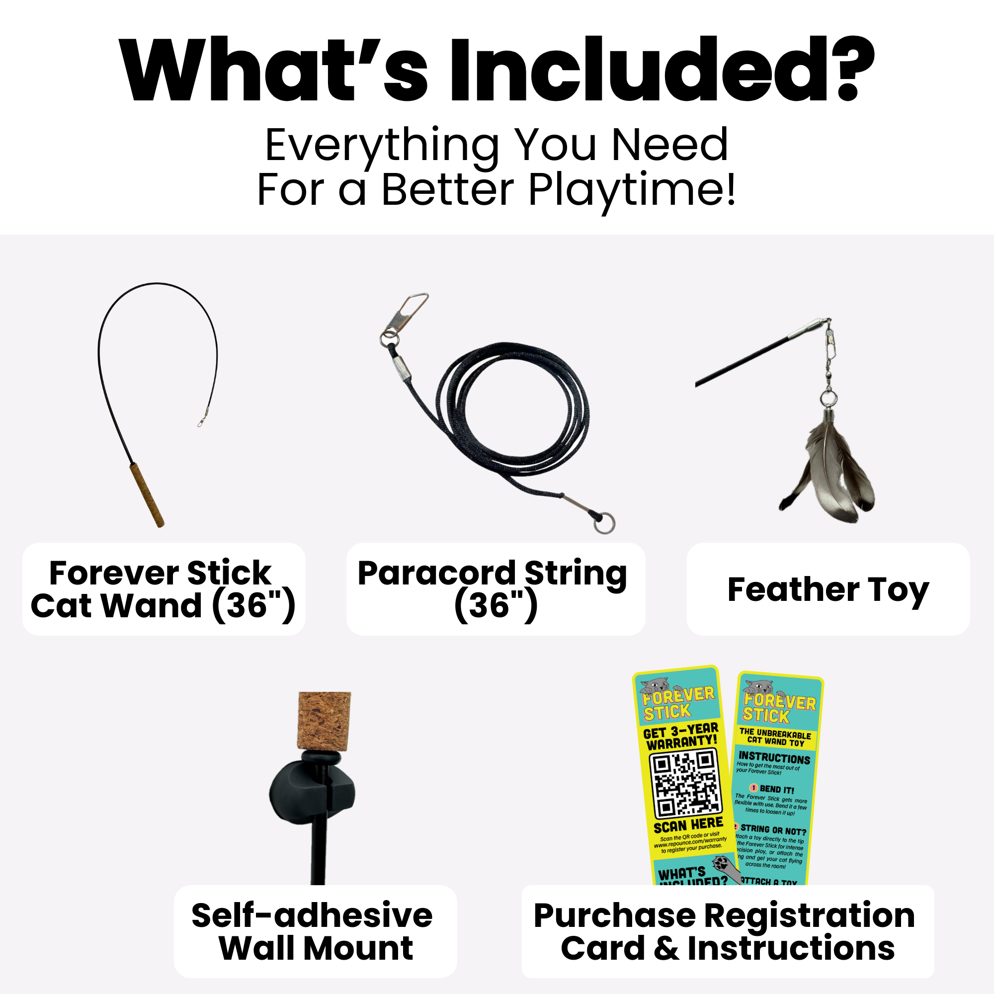 The best forever toy there is. Durable - Won't break during rough play! All-in-One String Toy and Teaser wand! Comfortable Cork handle and extra-long!