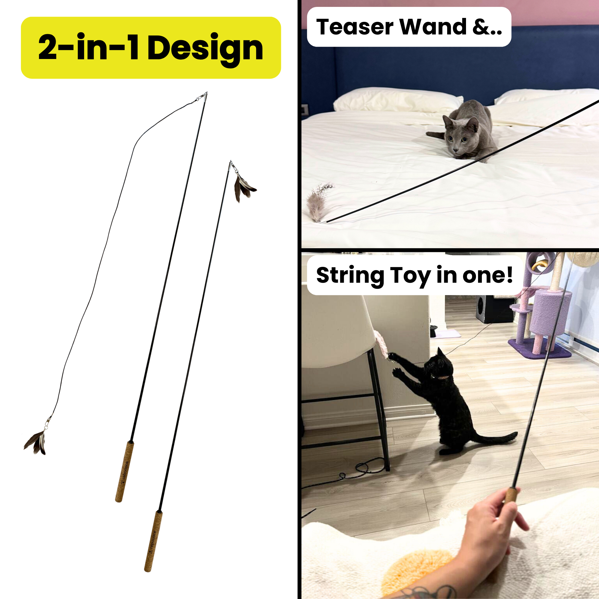 Repounce Forever Stick — Unbreakable 36″ Cat Wand with Cork Handle