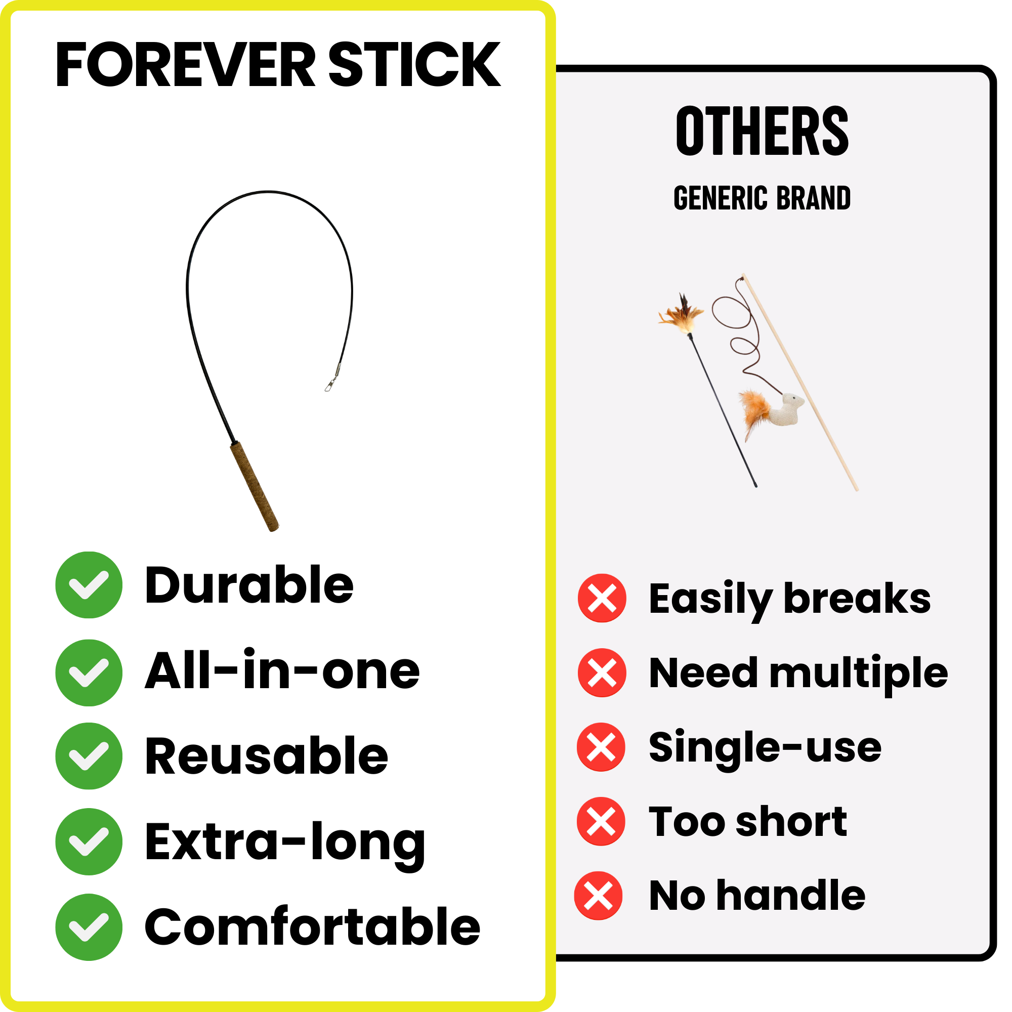 • FOREVER - Say NO To Single-Use Products! Don’t buy flimsy, single-use cat wand toys