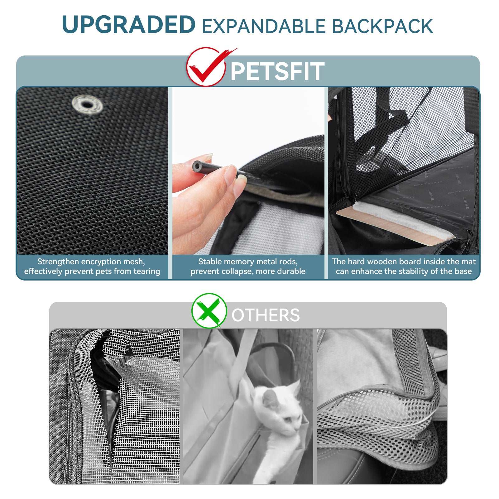 | Petsfit Cat Backpack Carrier - The Ultimate Solution for Your Pet's Comfort | A high-quality, breathable cat carrier designed for safety, comfort, and ease of use. Ideal for cats, small dogs, and other small pets up to 22 lbs. |