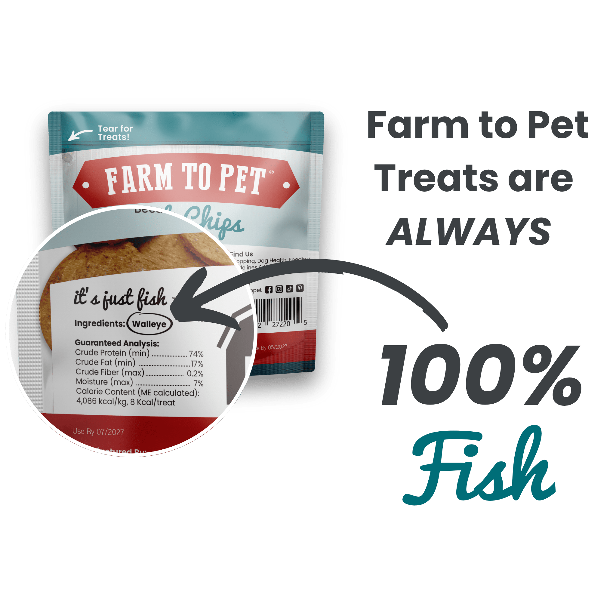 Fishing for an all natural dog treat to take with you on the go? Our Fish Chip Snack Packs pack all the delicious nutrition of our full-size fish treat bags into a portable size that's easy to get hooked on. Each snack pack contains six pieces of our low-fat, protein-rich, single-ingredient walleye fish chips, perfect for car rides, play dates, visits to the groomer, and of course, fishing trips! Easy to break into pieces and gentle on pet tummies, these handy packages also make ideal puppy training treats!