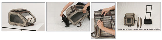 The 3-in-1 Petote Rio Traveler Bag is a great pet carrier on wheels that's perfect for your dog or cat! In addition to being a deluxe pet carrier on wheels, the Rio also becomes a backpack and a car-seat. Every Petote Rio Bag also comes with a removable, faux-fur lining that is machine washable. The Rio Bag features plenty of ventilation and an exterior zipper pocket for extra storage.